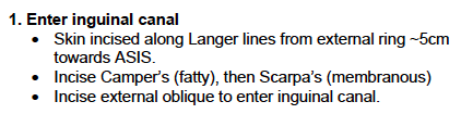 How is the inguinal canal entered in an Open Inguinal Hernia Repair?