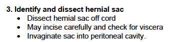 How is the hernial sac identified and dissected in an Open Inguinal Hernia Repair?