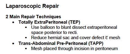 What are the 2 main techniques for Laparoscopic Inguinal Hernia Repair?
