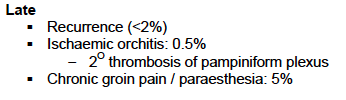 What are the late complications of Laparoscopic Inguinal Hernia Repair?