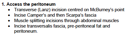 How is Access the peritoneum gained in an Open Appendicectomy?
