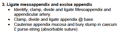 How do you Ligate mesoappendix and excise appendix in an Open Appendicectomy?