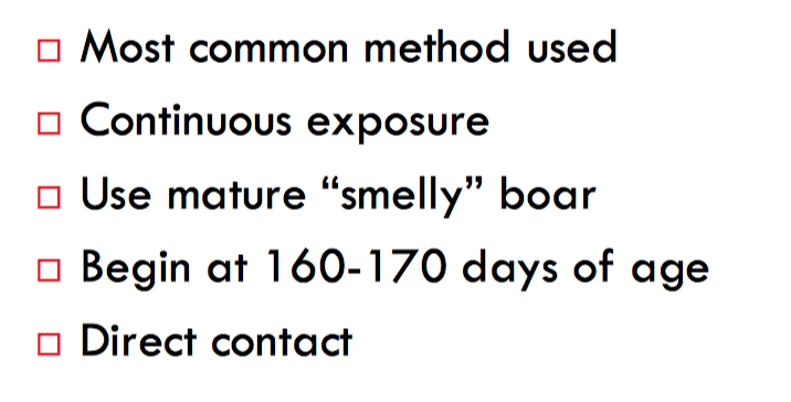 What is the most common method used in pigs to hasten the onset of puberty?