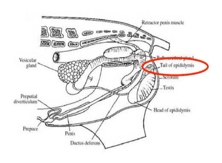 The tail of the epididymis is on the TOP and the head of the epididymis is on the BOTTOM