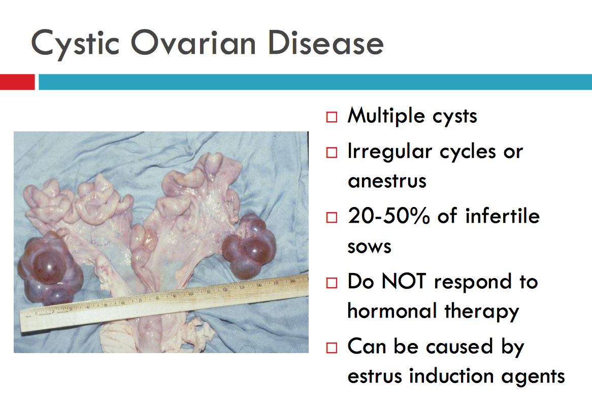 Cystic ovarian disease is the 2nd most common non-infectious cause of infertility in the sow