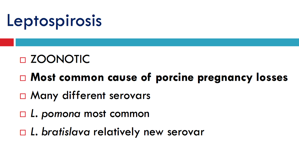 T/F: Vaccination for leptospirosis in pigs should be performed at least once a year