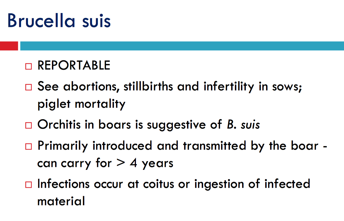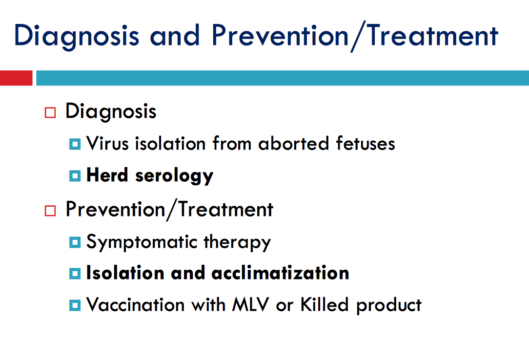 Can be brought in by carrier animals; Clinical signs depends on the stage in which the females becomes infected but usually mummified and macerated fetuses