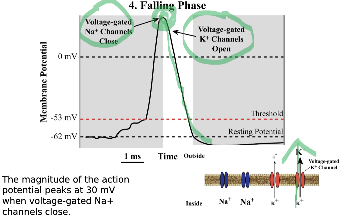 when do voltage-gated Na+ channels close and voltage-gated K+ channels open in AP?