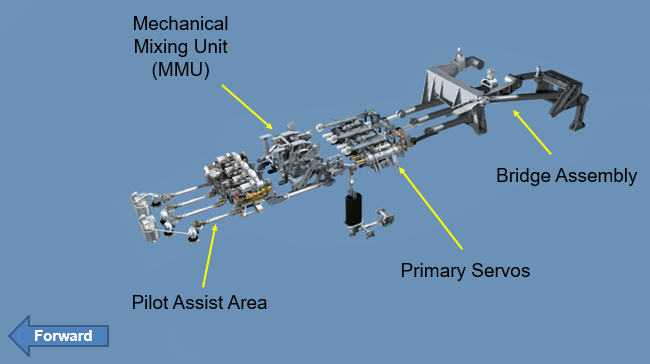 What mechanical systems assist the pilot with control of the helicopter?