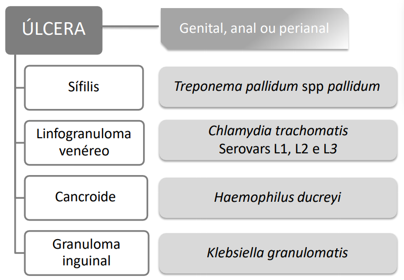 IST caracterizadas por aparecimento de úlceras genitais, anal ou perianal: (4)