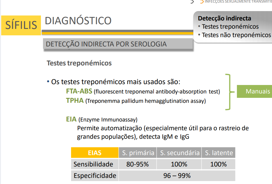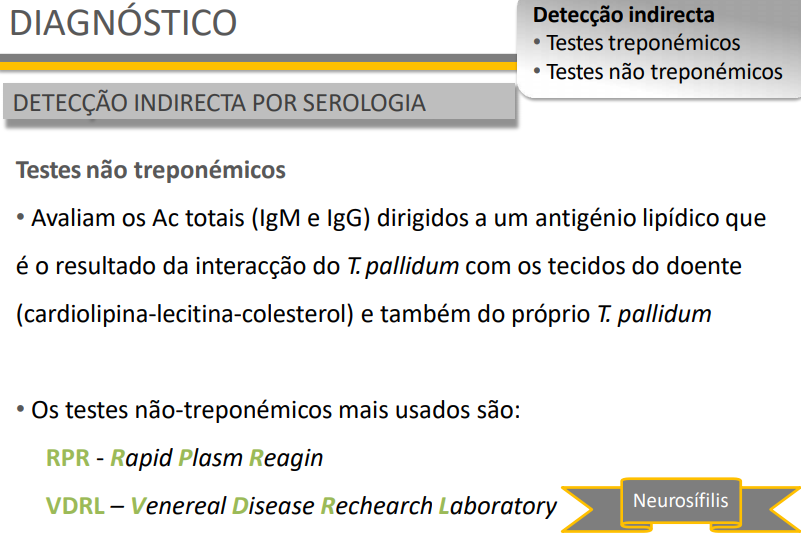 Métodos de diagnóstico directos e indirectos da Sífiliis