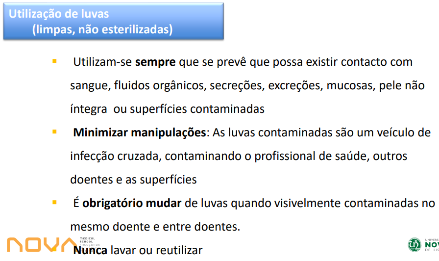 Situações em que se deve recorrer a utilização de luvas