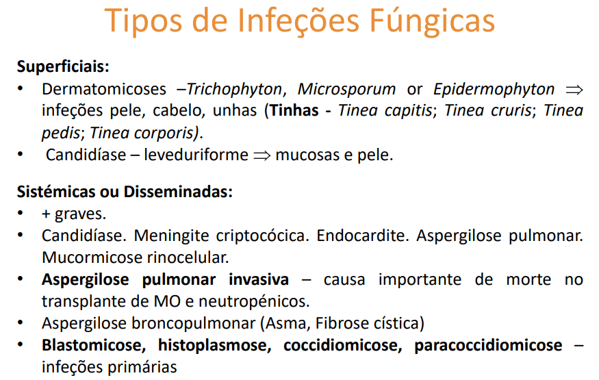 2 grupos de iinfecções fúngicas: