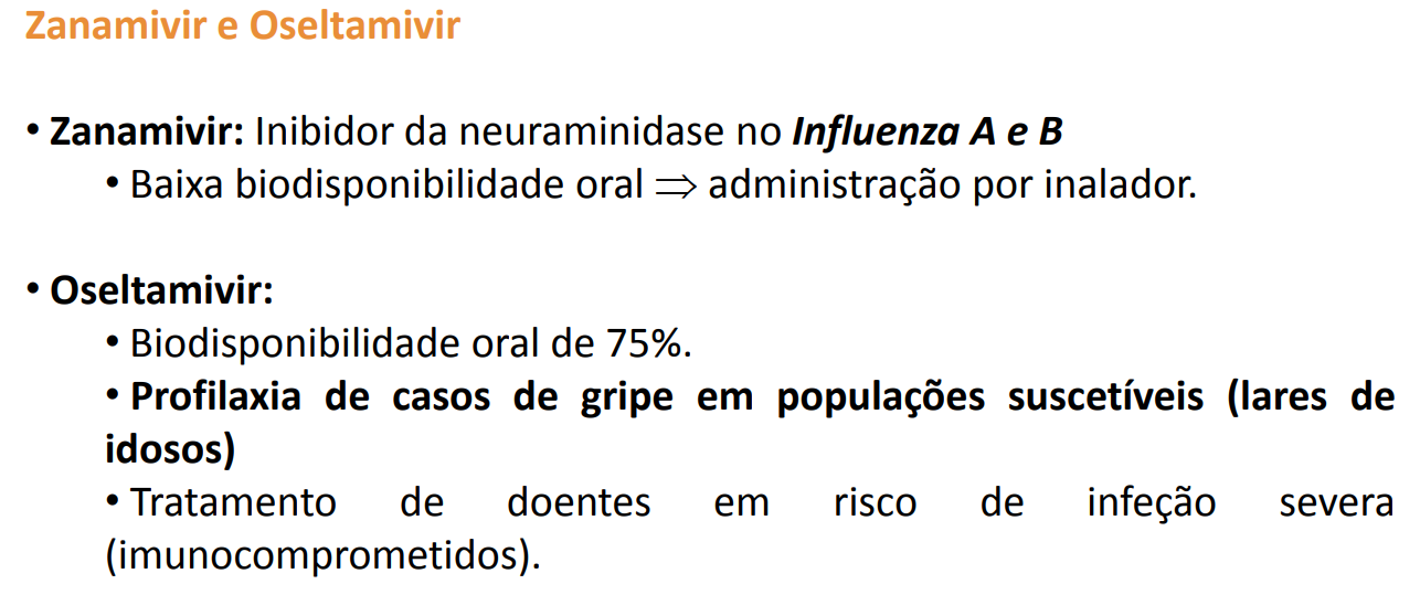Ambos: Redução da duração dos sintomas da gripe (~1 dia) se tomados no intervalo de 2 dias após início de sintomas.