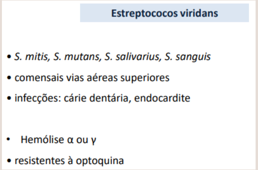 Os S. viridans são resistentes à optoquina = crescem num meio em que esta esteja presente.