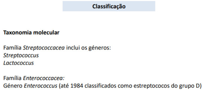 Classificação da familia Streptococcacea