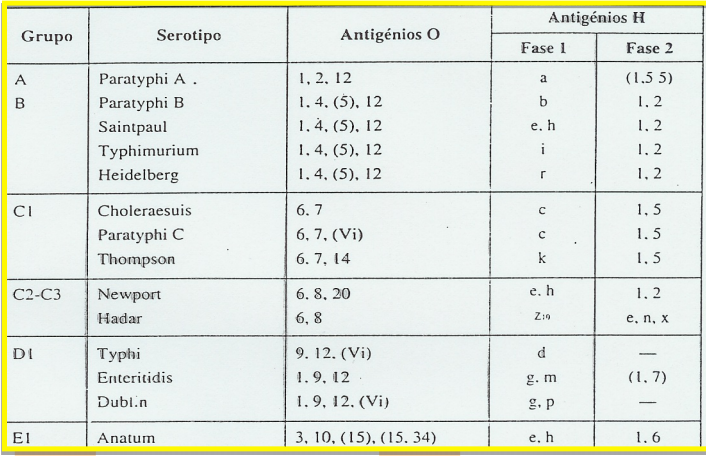 Nota: A classificação antigénica baseia-se na presença dos Ags O, K e H, que se detectam por aglutinação com soros específicos.
