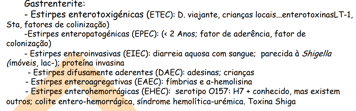 E.Coli é uma bactérica que coloniza o homem mas há umas estirpes patogénicas. Quais? (6)