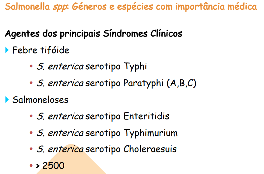 Principais Síndromes clínicos da Salmonella e seus agentes (2):