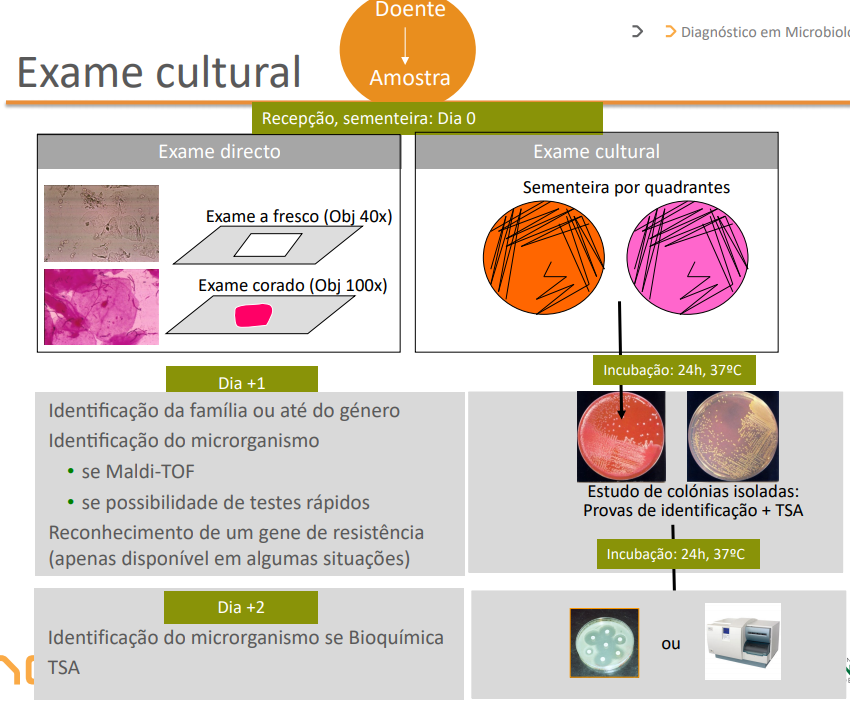 O exame directo pode ser: Exame a fresco ou exame corado.