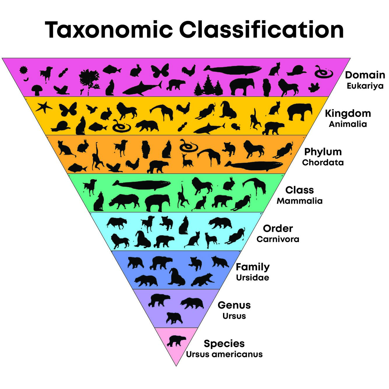 Taxonomic classification uses ranked categories that become more specific until the last level of species is reached.