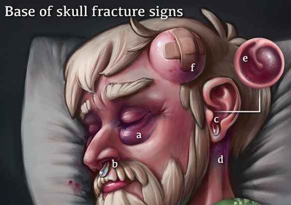Fatal brain swelling occurring after minor head trauma, occurs in pts <20