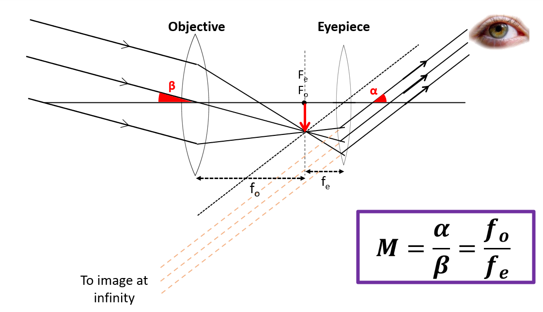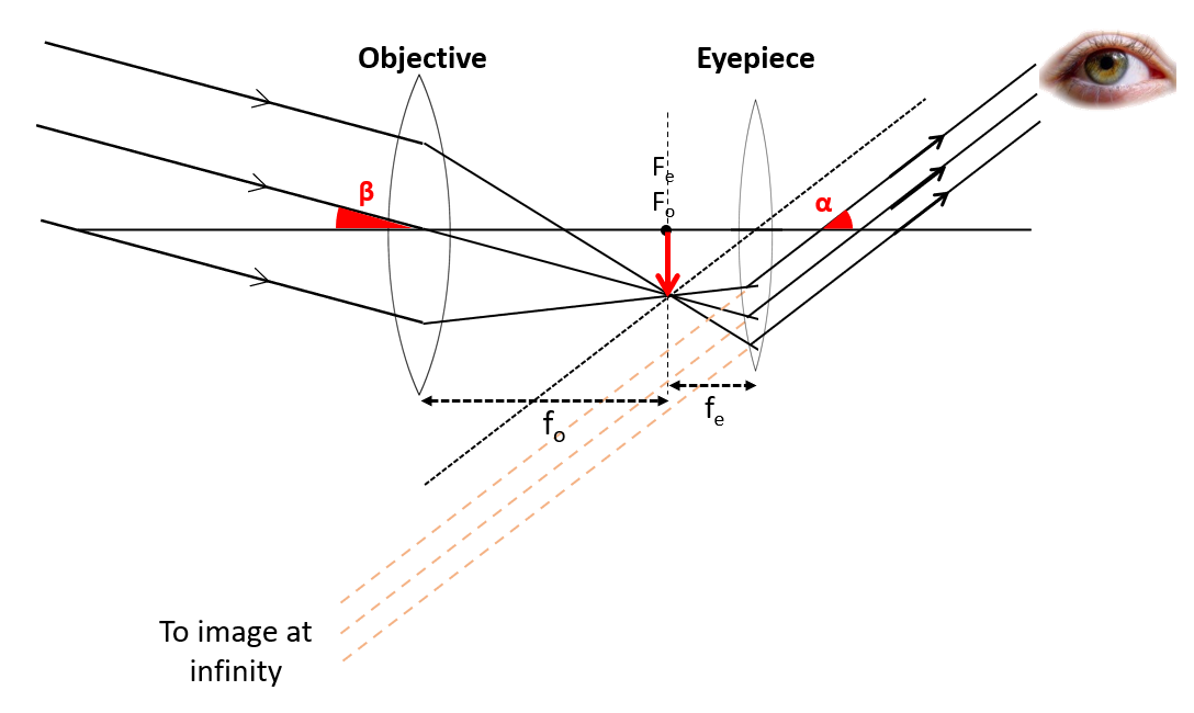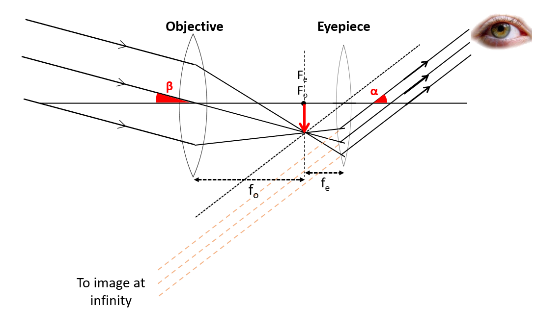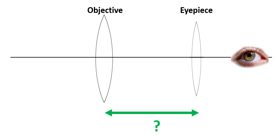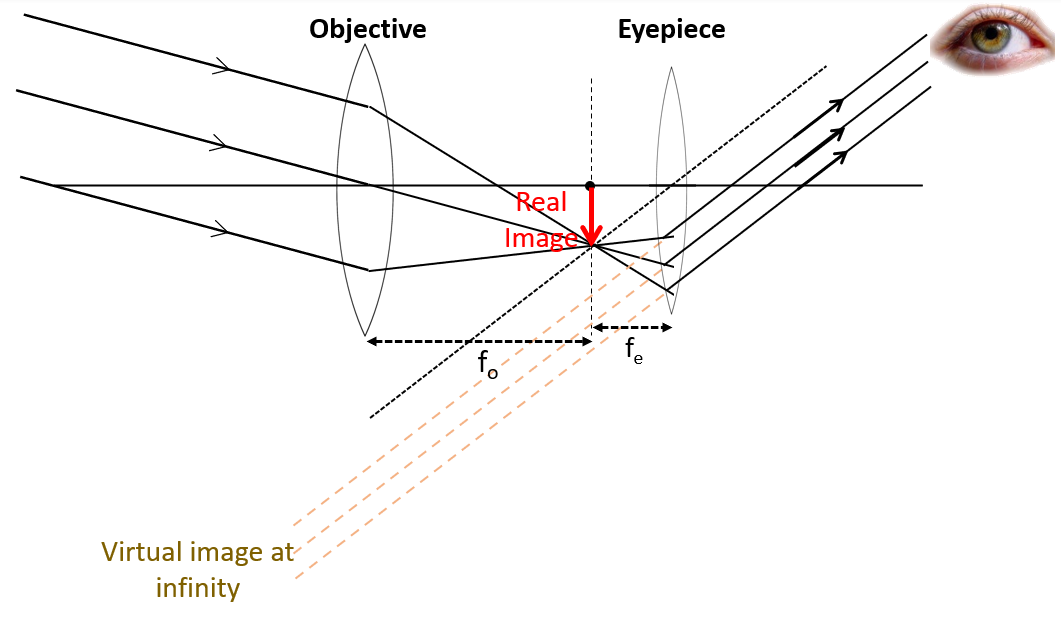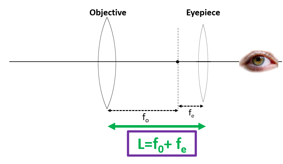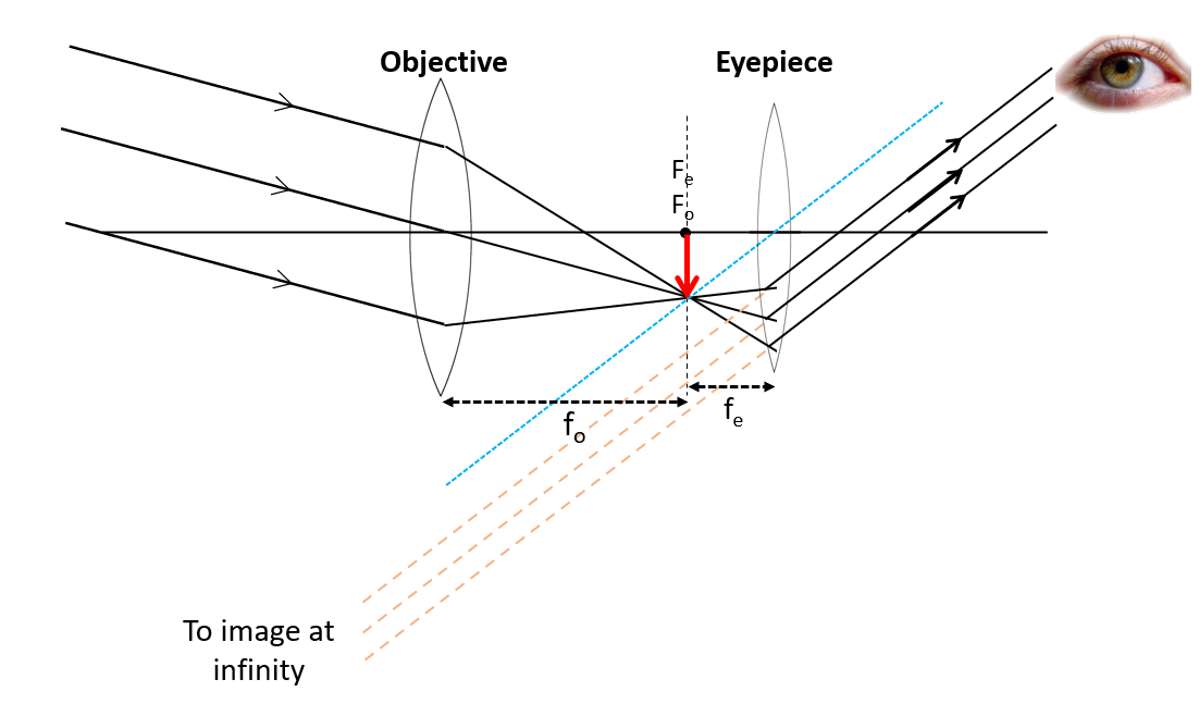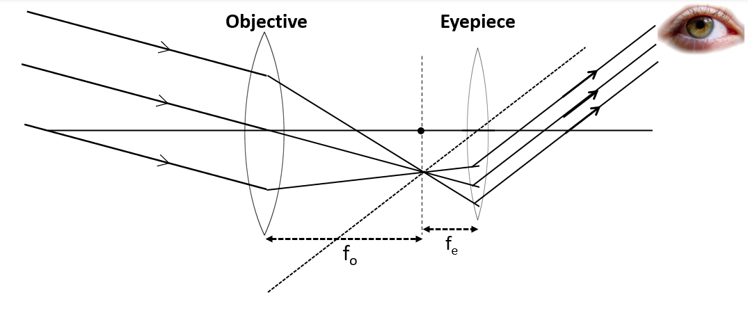 Draw a labelled diagram of the refracting telescope in normal adjustment