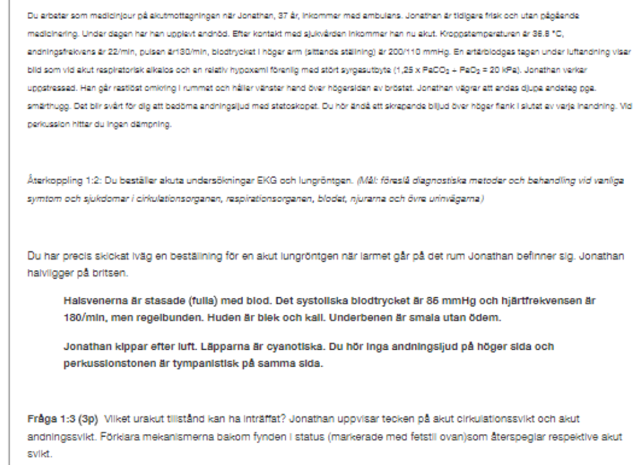 Du arbetar som medicinjour på akutmottagningen, när Jonathan, 37 år, inkommer med ambulans. Jonathan är tidigare frisk och utan pågående medicinering. Under dagen har han upplevt andnöd. Efter kontakt med sjukvården inkommer han nu akut.