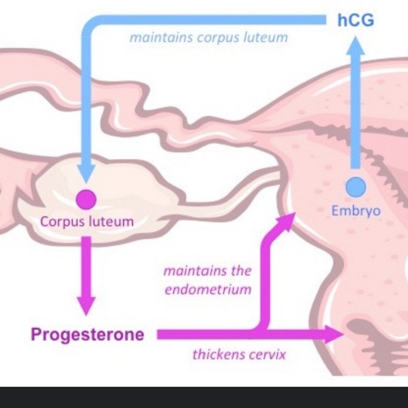 Stimulates corpus luteum to continue secretion of progesterone and estrogen