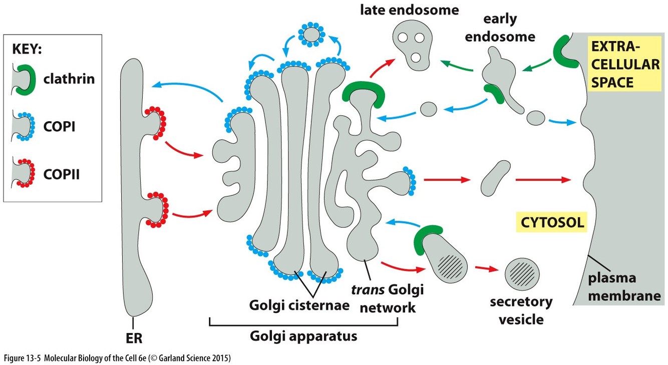 Clathrin: Plasma membrane > golgi, Golgi > endosome