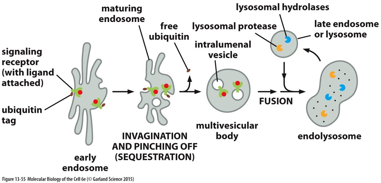 Bring the membrane proteins inside the endosome, into intralumenal vesicles