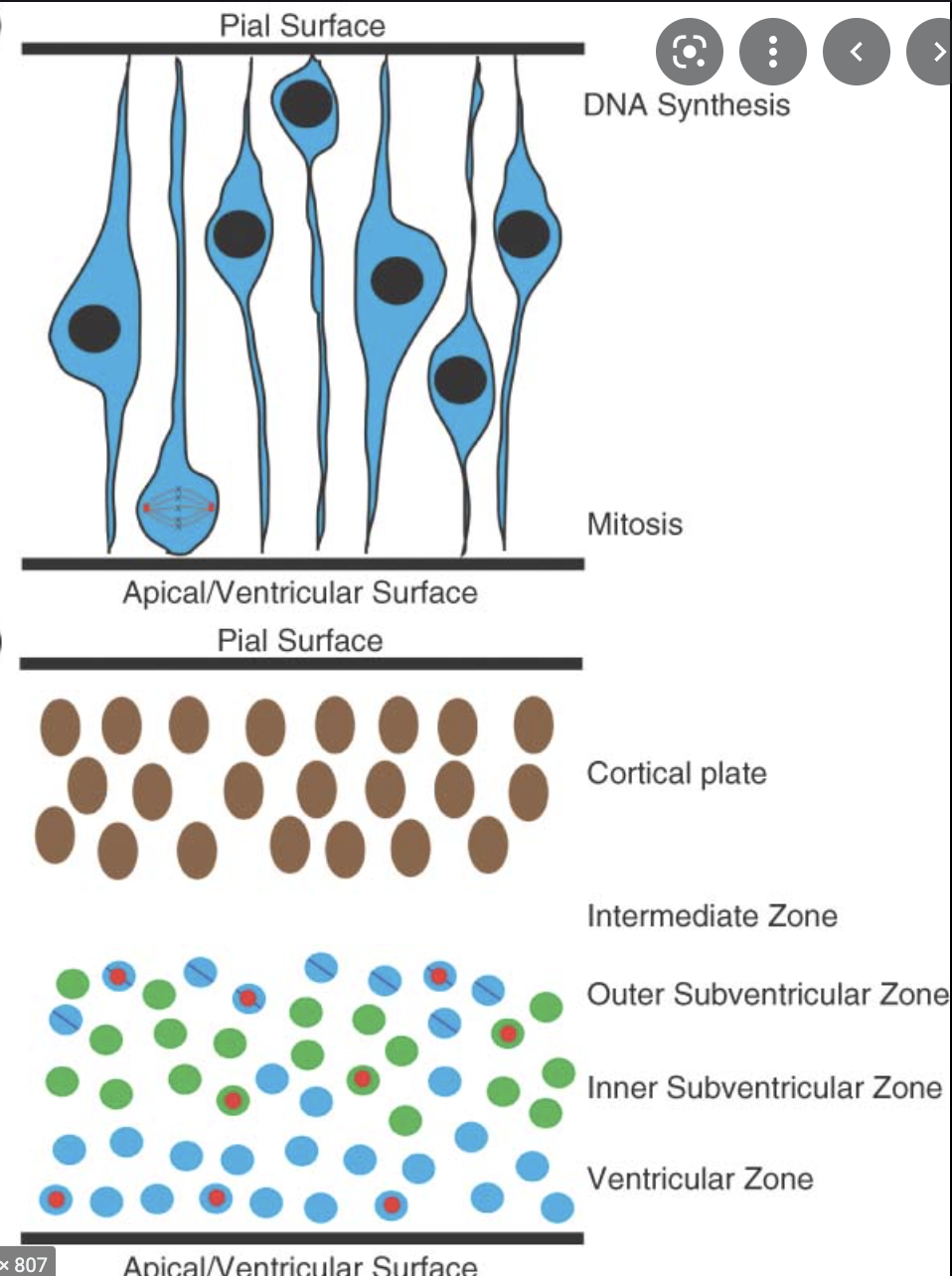 4 - originate = ventricle zone and migrate to = cortical (cortex) area