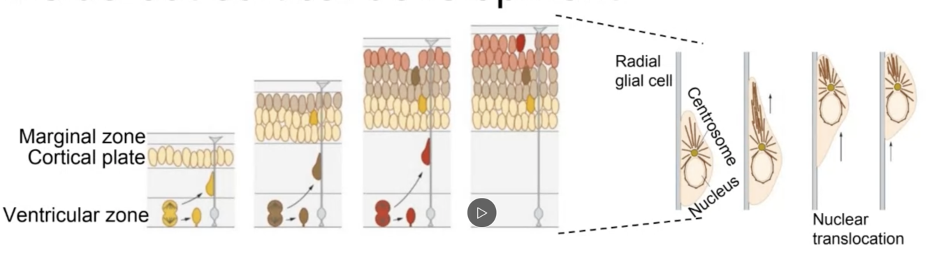 - movement of neurons is facilitated by the cytoskeleton and called radial glial cell migration