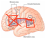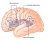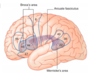 Which lobe and other structure of the brain are heavily involved in emotion, language, memory and auditory?