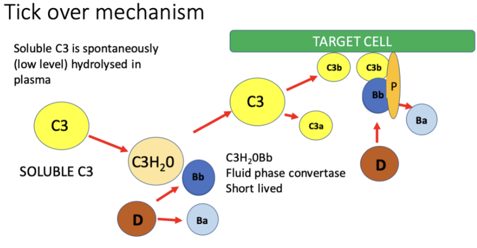 Because C3 spontaneously!! splits in the plasma, this is a tick over mechanism bc the above process keeps happening