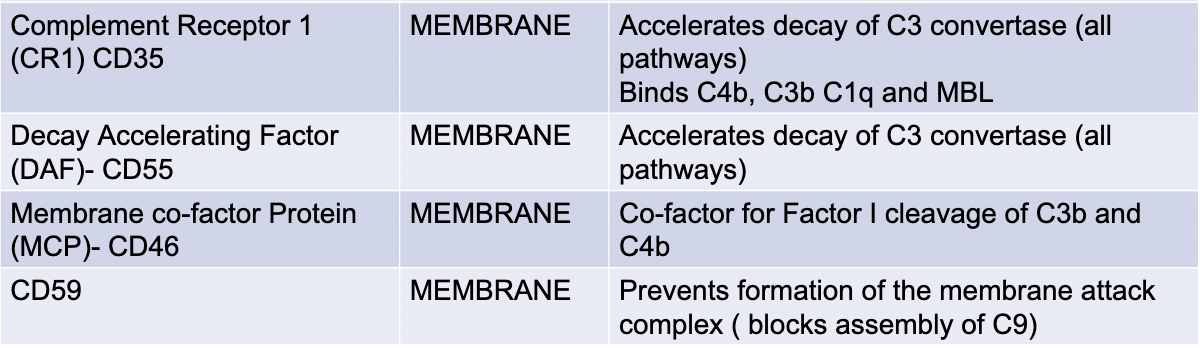 Complement Regulatory proteins can b soluble or membranous. They prevent complement on host cells