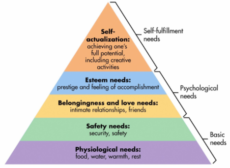 Describe Maslow’s hierarchy of needs (in particular, the five primary components).
