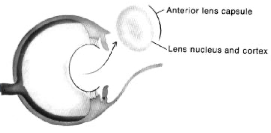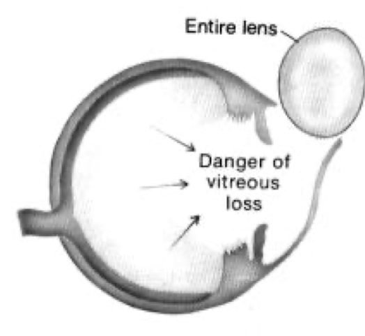 Partial/complete displacement of the lense from the fossa hyaloidea