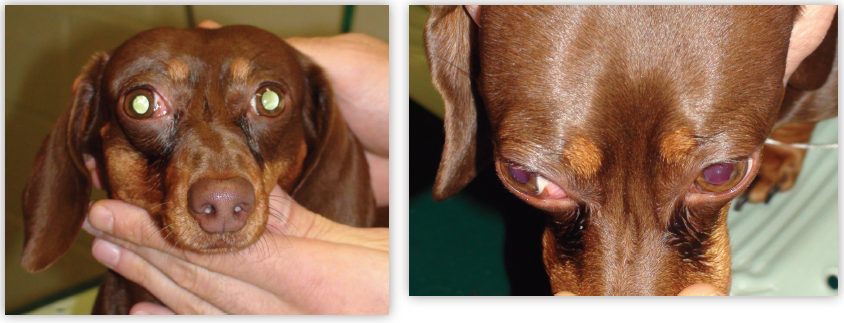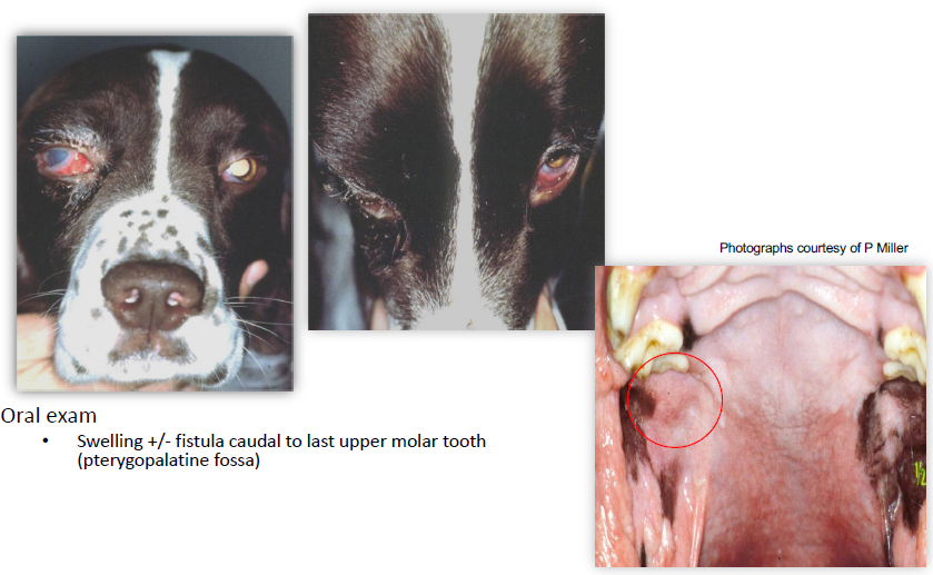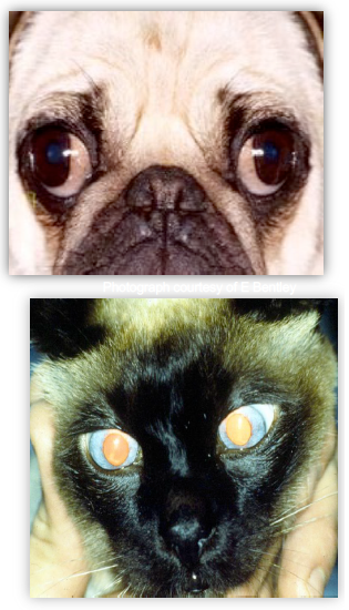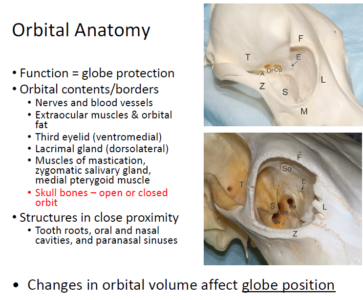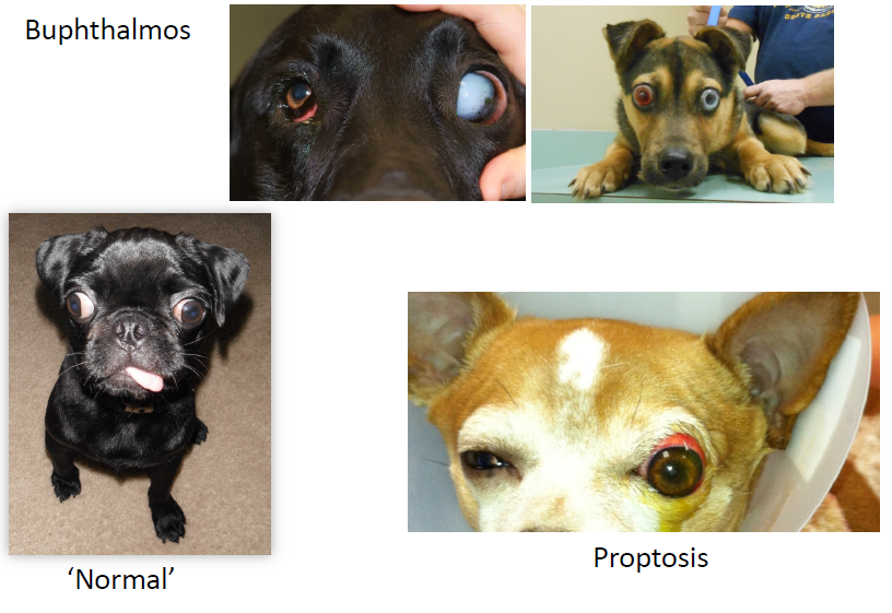 exophthalmos (an eye that is pushed forward relative to its normal position, but is still in the orbit)