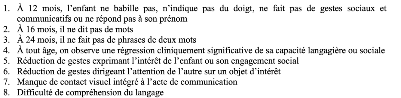 TSA - nommer 8 caractéristiques / signe d’appel permettant d’évoquer la possibilité d’un TSA
