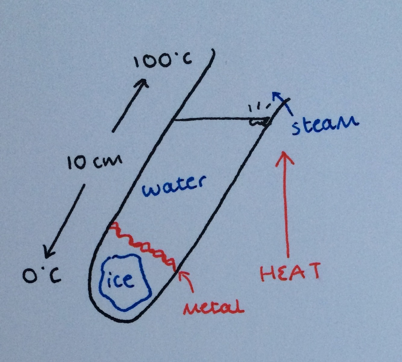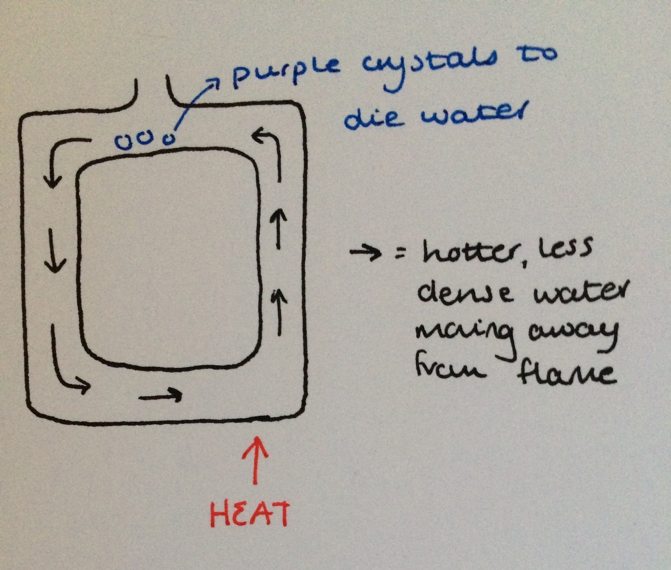 a square-ish/circle tube is filled with water in one corner (starting by the arrow that says ‘heat’)
