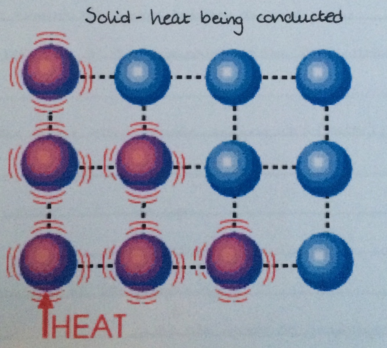when metals are heated the electrons gain KE and collide with others, sharing their KE