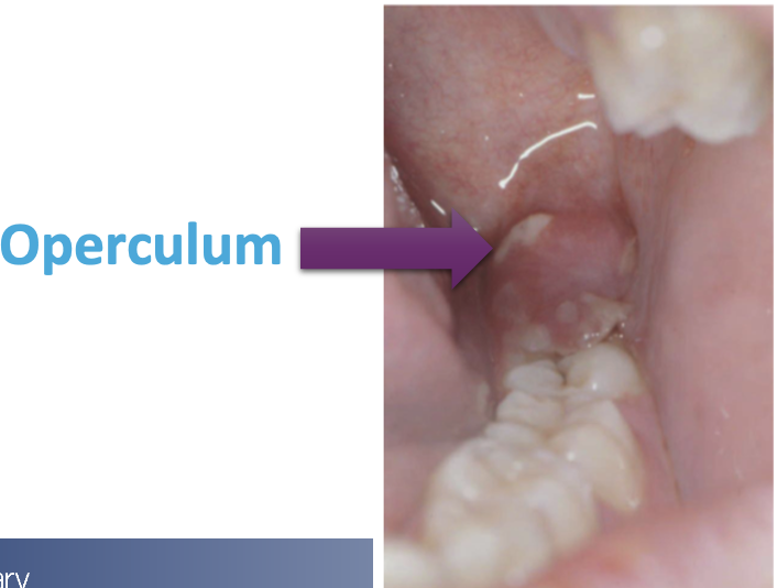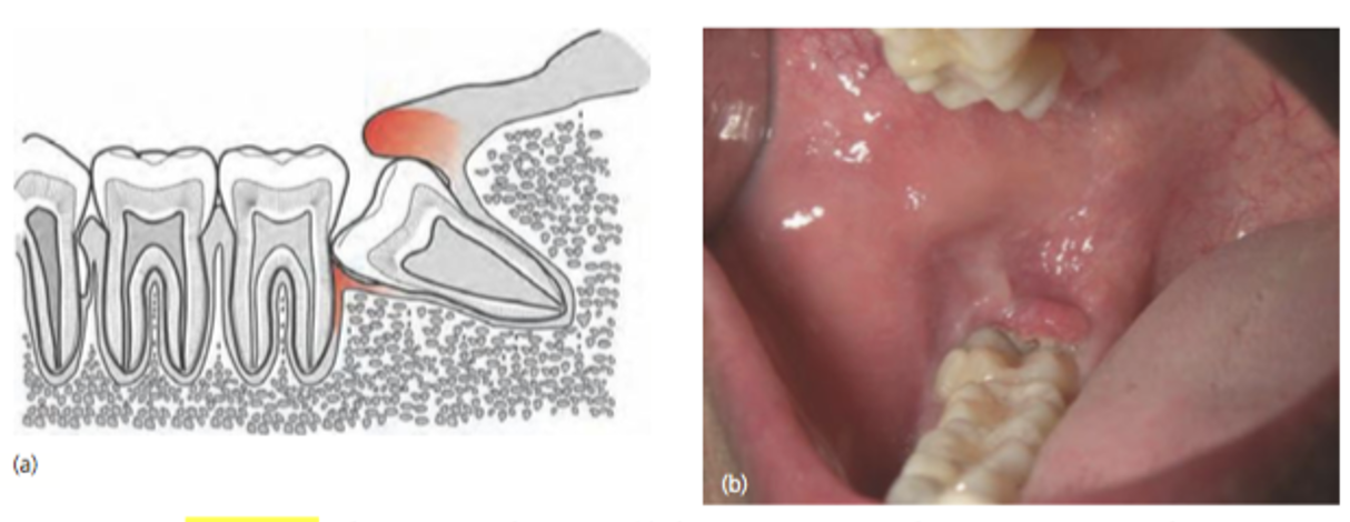 Soft tissue inflammation related to the crown of a partially erupted tooth