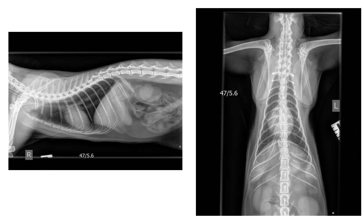 what are the 4 radiographic views that can be used to assess the thorax of dog and cat