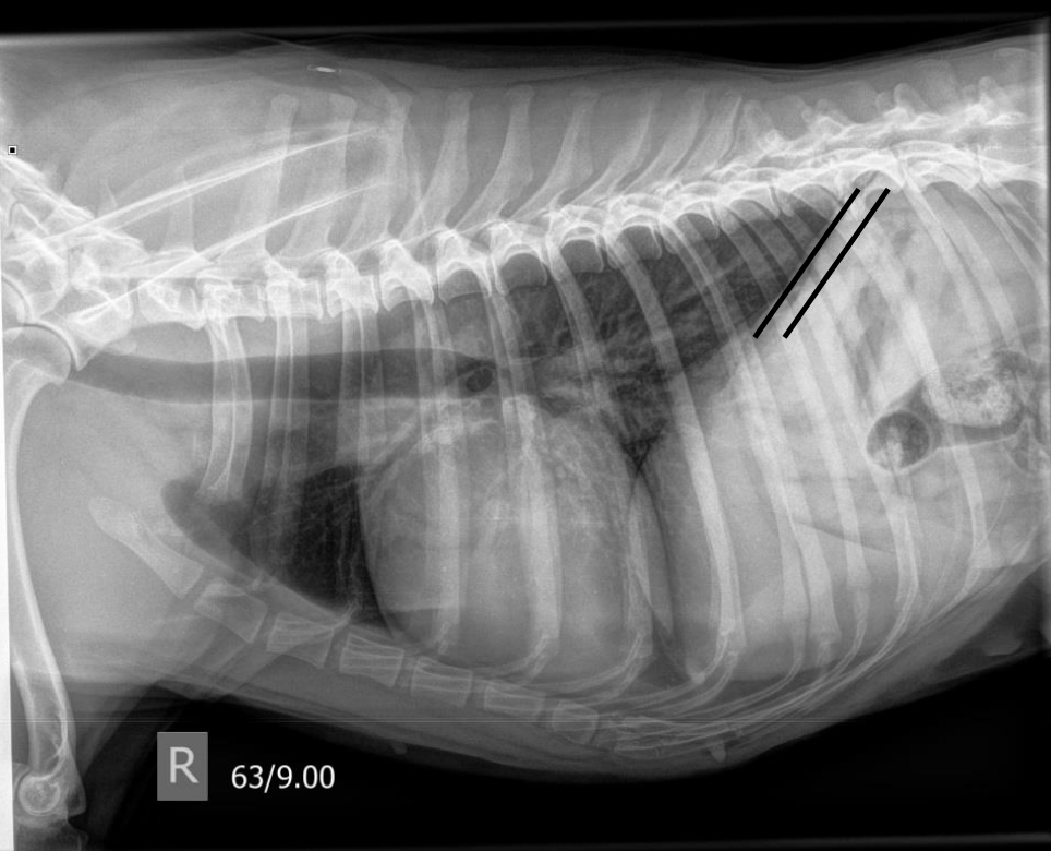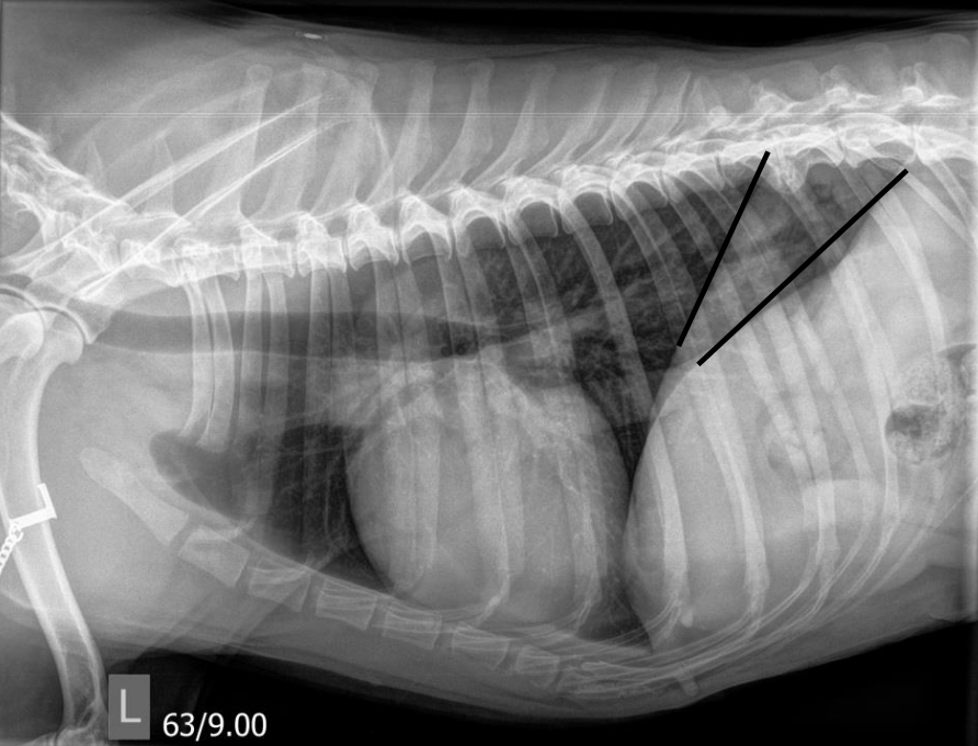Why do you think the lungs look clearer in the L lateral view of one dog than the R lateral view of the other?