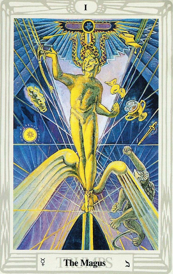 The Magician is the positive side. He represents the active, masculine power of creative impulse. He is also our conscious awareness. The Magician is the force that allows us to impact the world through a concentration of individual will and power. The High Priestess is the negative side. She is the mysterious unconscious. She provides the fertile ground in which creative events occur. The High Priestess is our unrealized potential waiting for an active principle to bring it to expression.