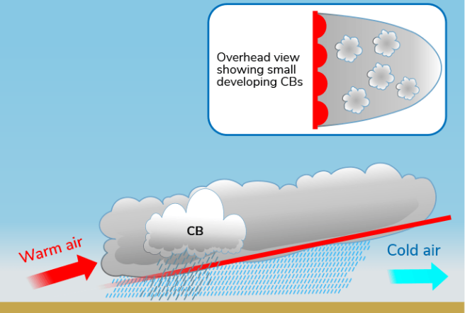 * Most often associated with cold fronts, but can also occur with warm fronts