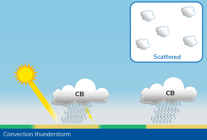 Thunderstorm activity may cover a very large area and CBs associated with thunderstorms may extend vertically as high as