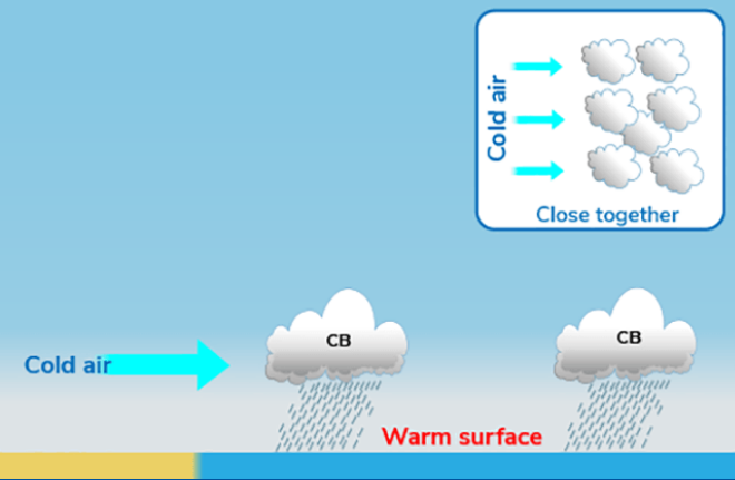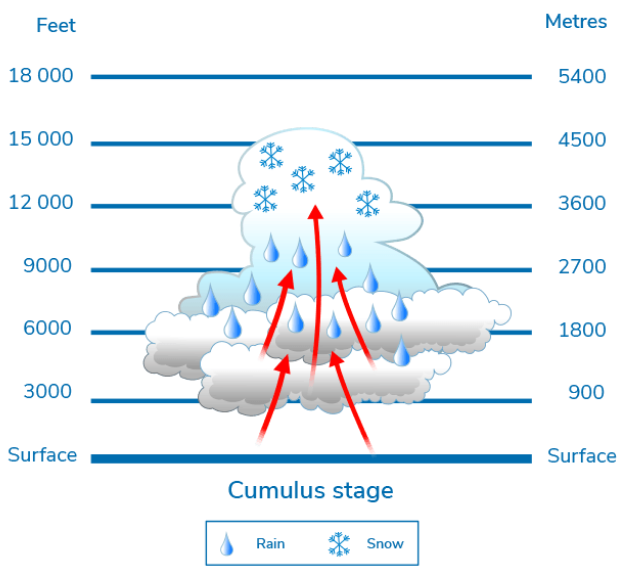 These factors are also required for the formation of harmless cumulus clouds, so their intensity is a key factor.
