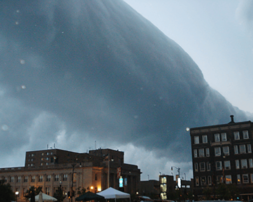* Often appear on the leading edge of the storm and mark the position of eddies or swirls where the wind changes direction (known as a shear zone and is most prevalent with cold fronts and squall lines)